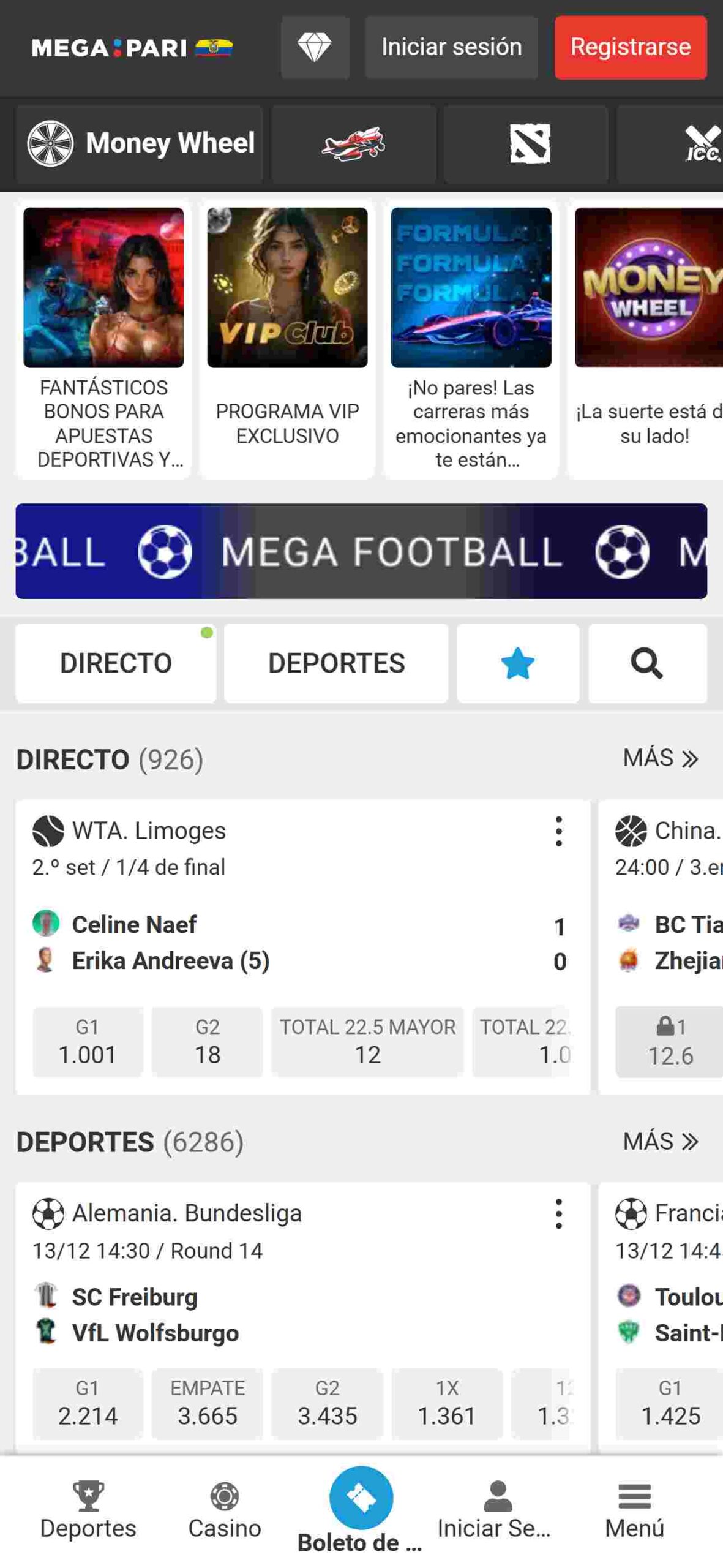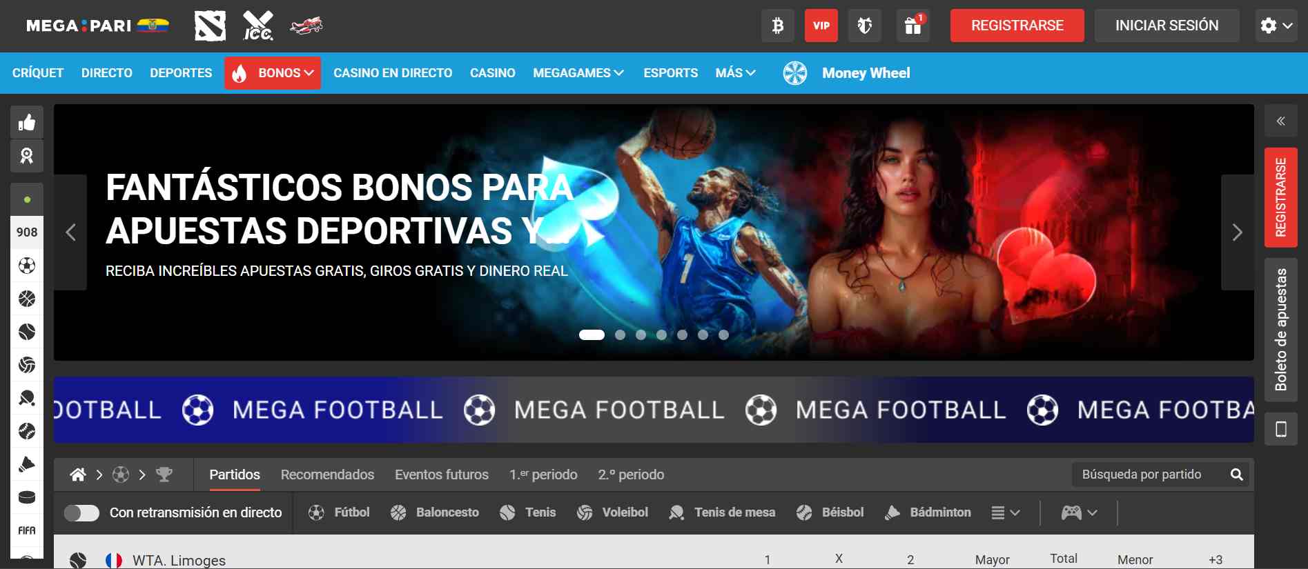 En Megapari, tendrá el control de sus apuestas. Aquí podrá explorar más de 30 deportes y más de mil eventos, donde podrá hallar eventos de todo el mundo, no solo de su ubicación.