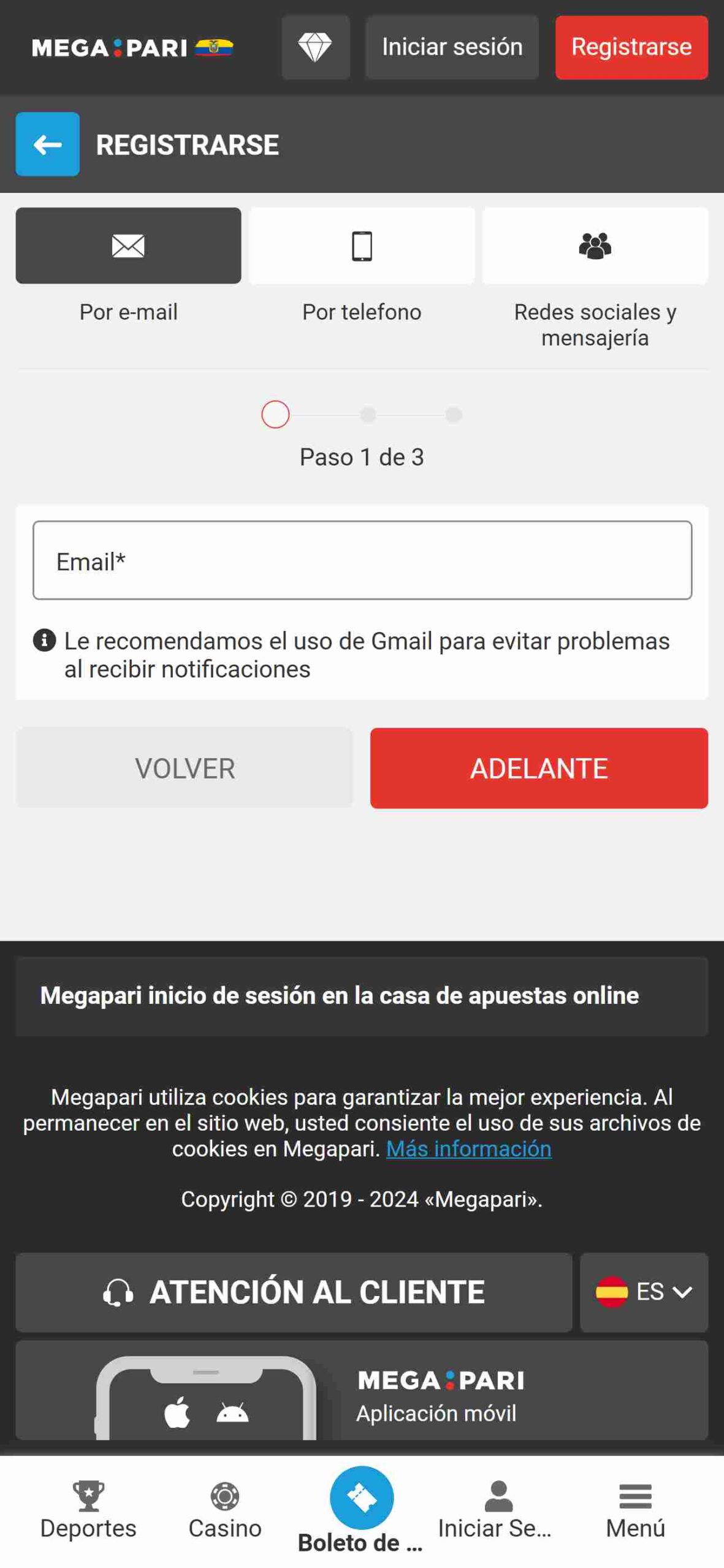 Registrar una cuenta en Megapari4.5/5
