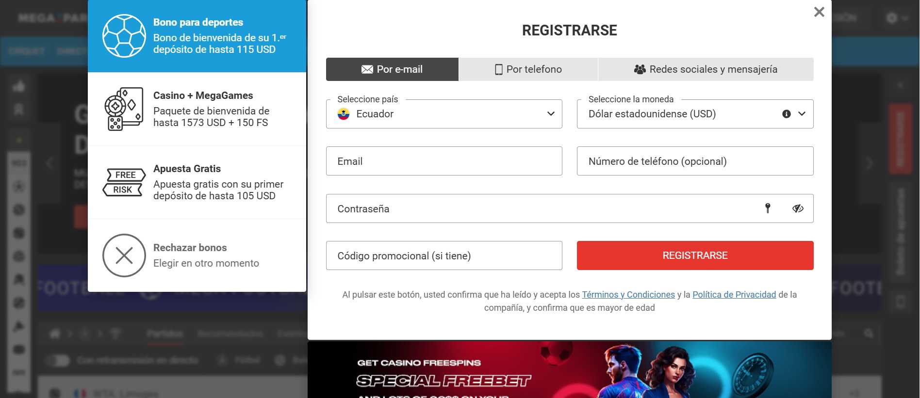Consulta la siguiente lista con los bonos más recientes y destacados que ofrece Megapari para usuarios de Ecuador en 2025: