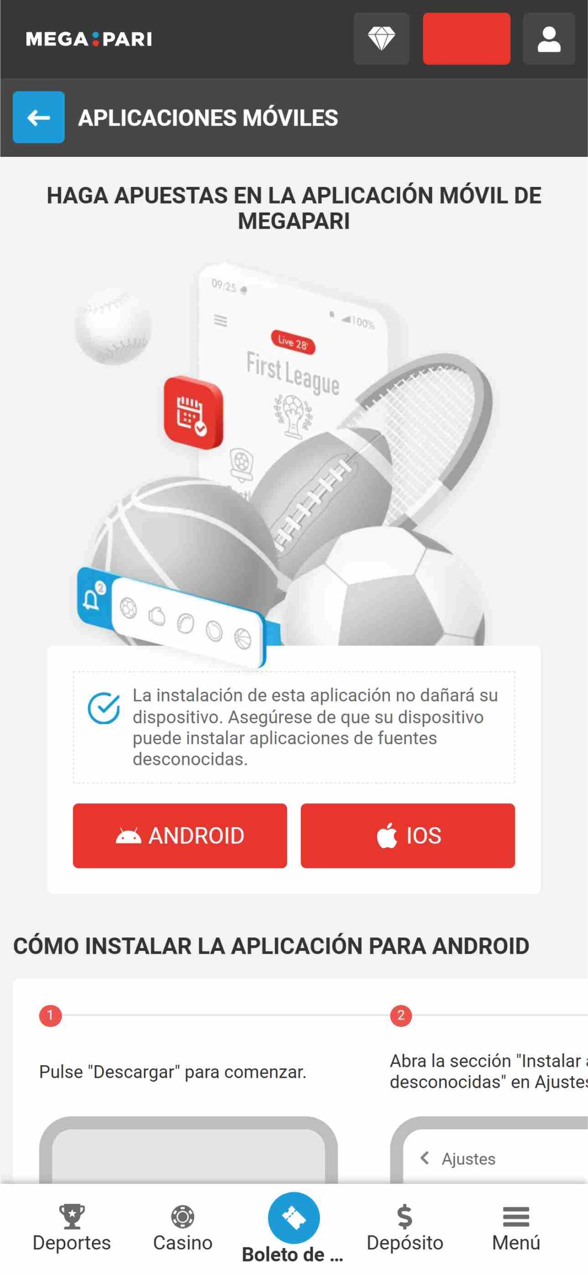 Con Megapari podrás apostar desde la web, pero también por medio de tu móvil. La plataforma cuenta con una app, disponible para Android y iOS. Esta app puede ser descargada por a través de la página oficial simplemente presionando el enlace de “Descargar” o escaneando un código QR.