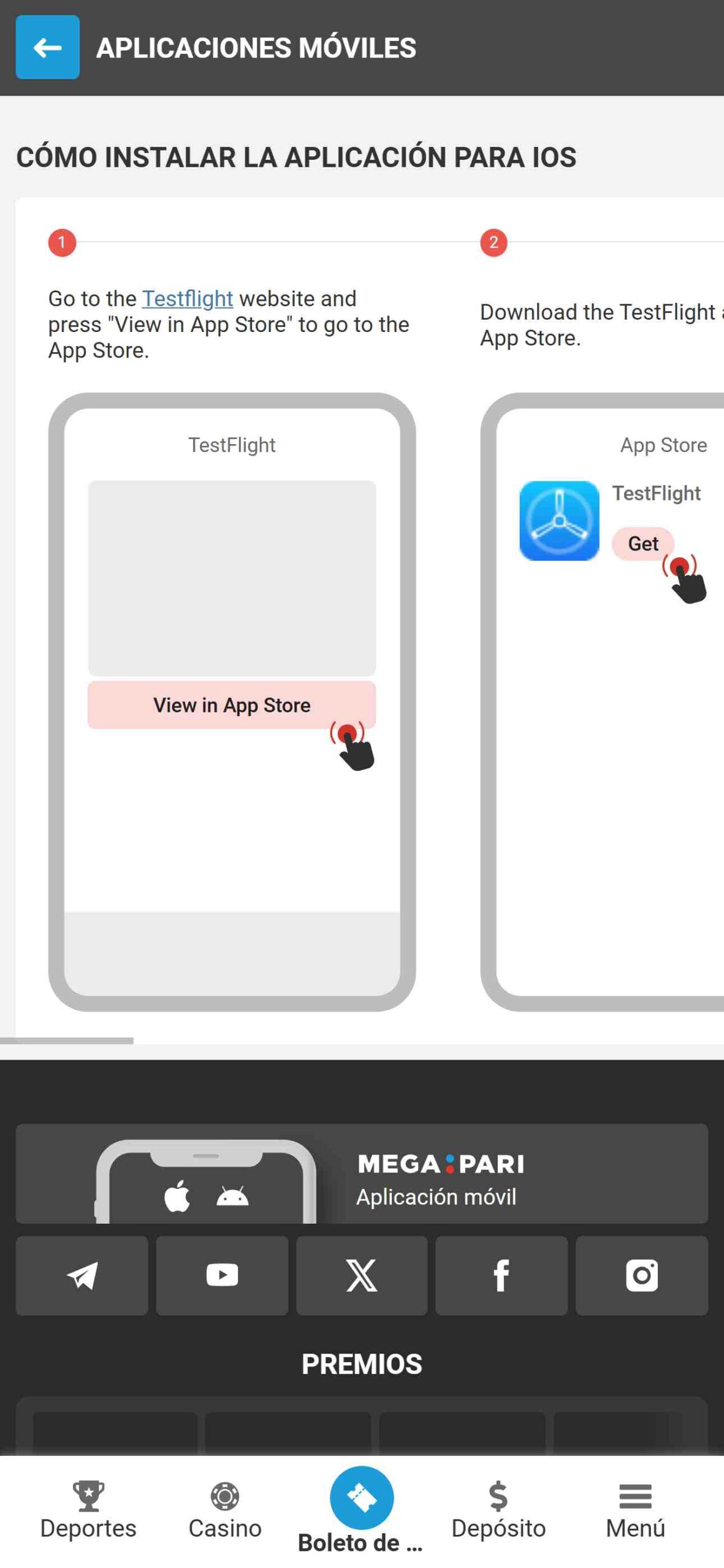 Versión móvil y aplicación Megapari4.5/5